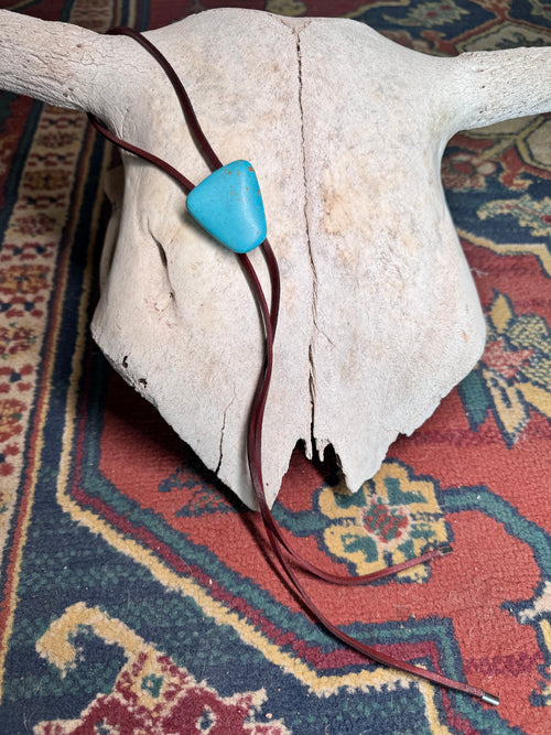Bolo Cowboy de Cuero Marrón con Piedra Turquesa